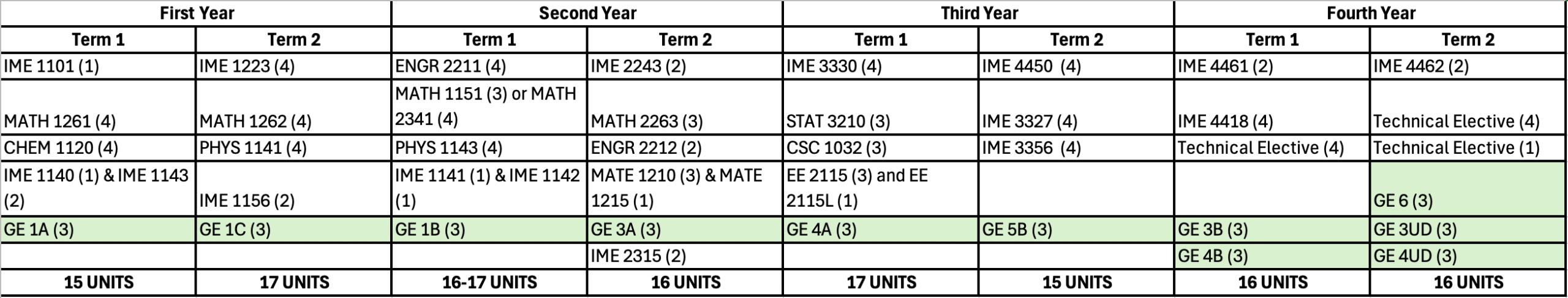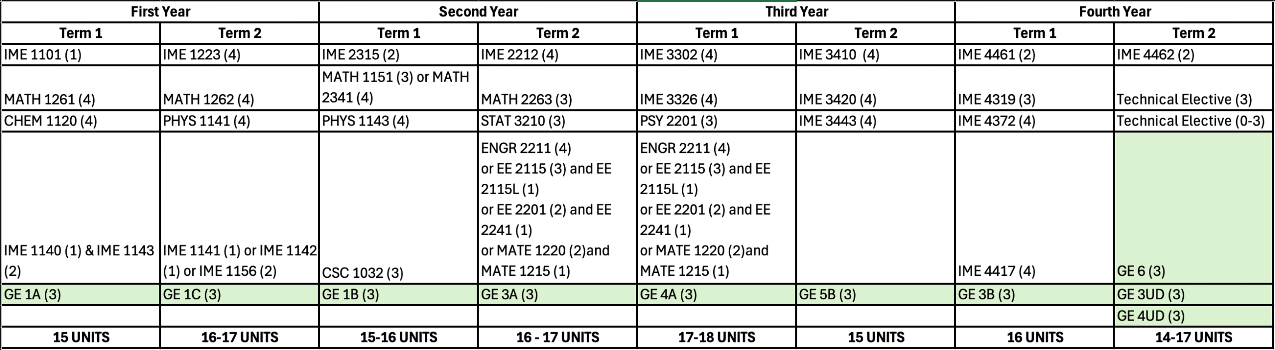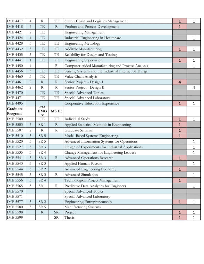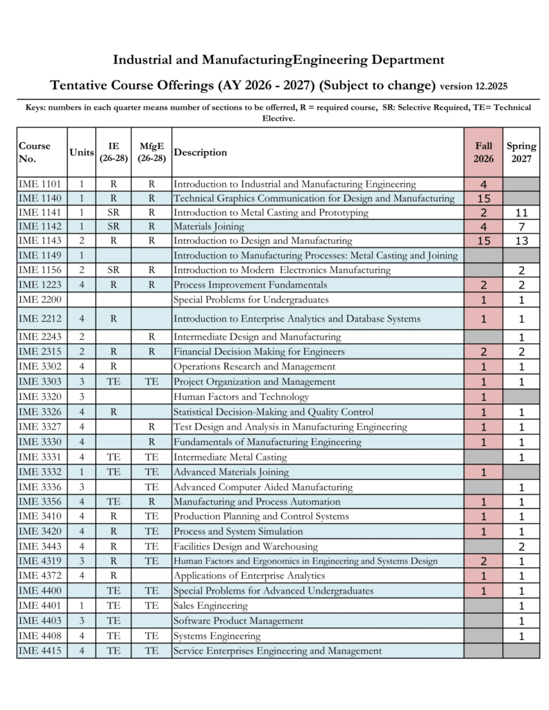 IME courses tentatively scheduled for upcoming terms.