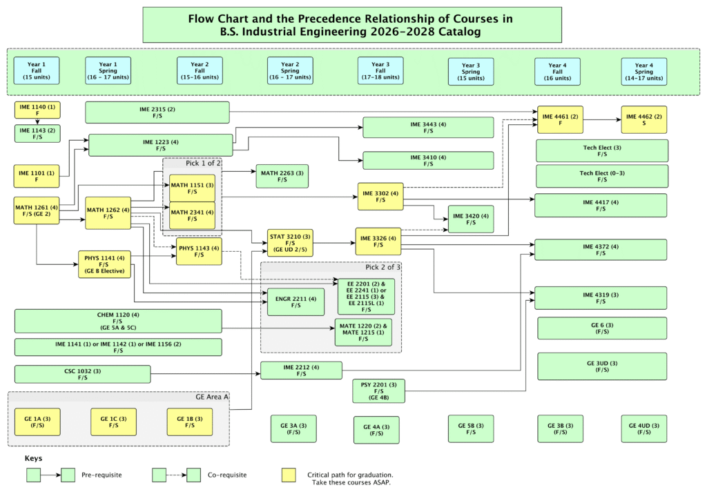 Course sequencing diagrams for Industrial Engineering.